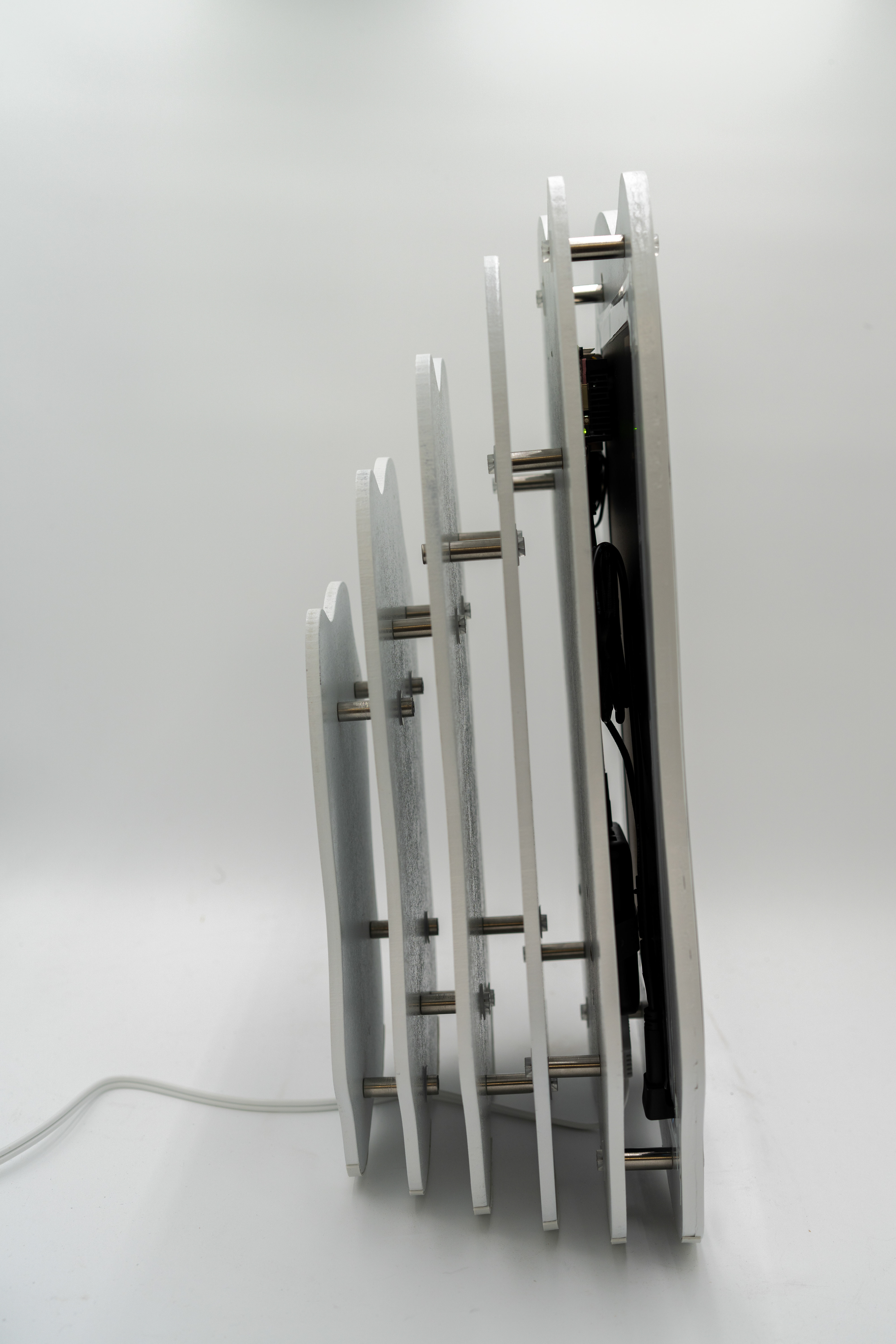 After completing laser cutting and spray painting the face of the device, I began mounting the hardware.
